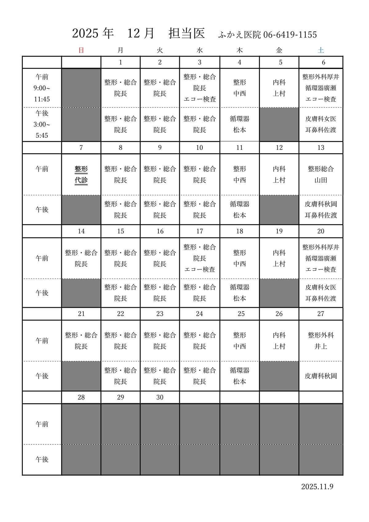 ※皮ふ科、耳鼻咽喉科の休診日はHPでご確認ください